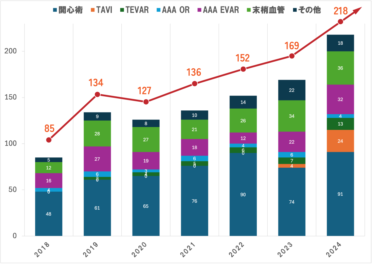 前橋赤十字病院は、最新の医療技術を取り入れ、常に最先端の患者さんに最も適した治療を提供しています。2023年にハイブリット手術室を新設し最新のカテーテル治療も行っております(経カテーテル大動脈弁留置術(TAVI),ステントグラフト治療)